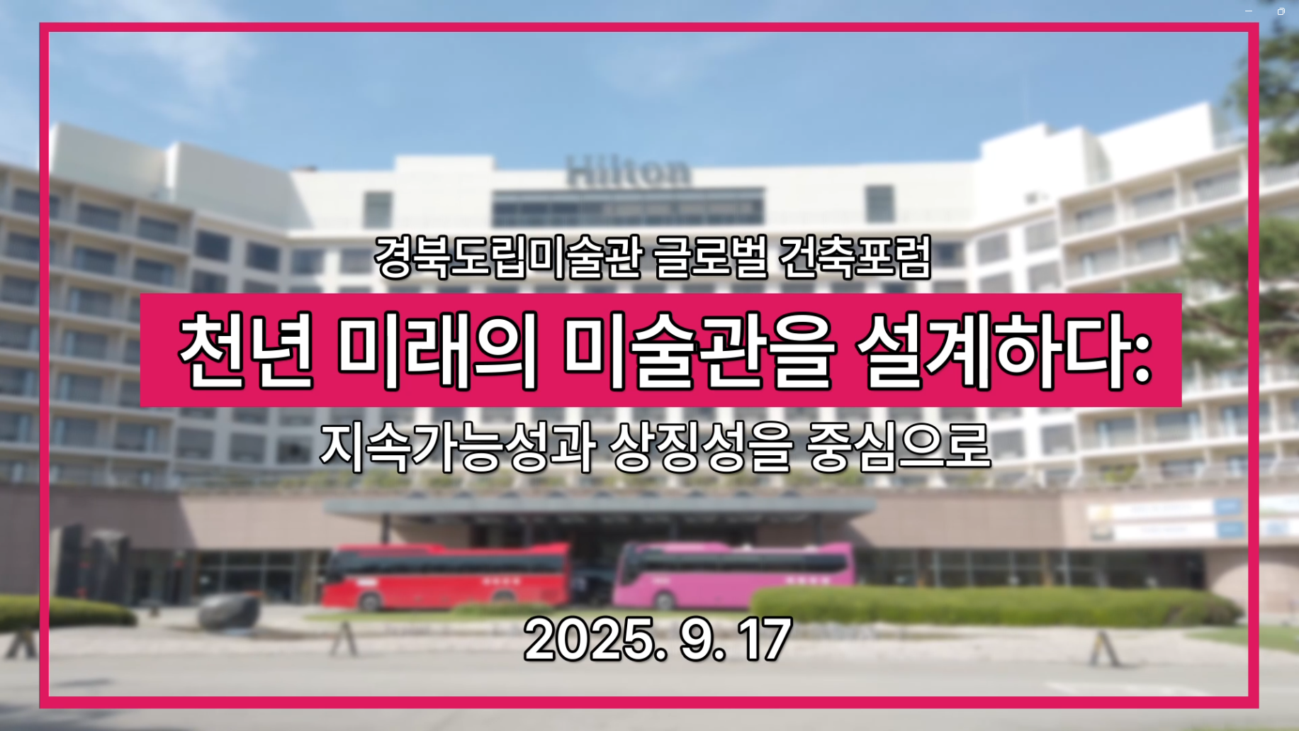 경북도립미술관 건립을 위한 전문가 포럼(2023대한건축학회 추계학술대회)일시 2023.10.26 14:00장소 하이원그랜드호텔컨벤션타워 502호